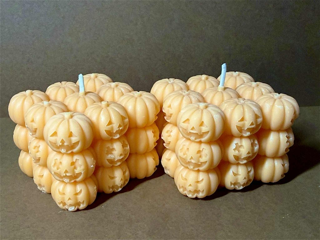 Stylová svíčka  z drobných dýní s vyřezanými obličeji - ideální dekorace na Halloween i podzimní večery