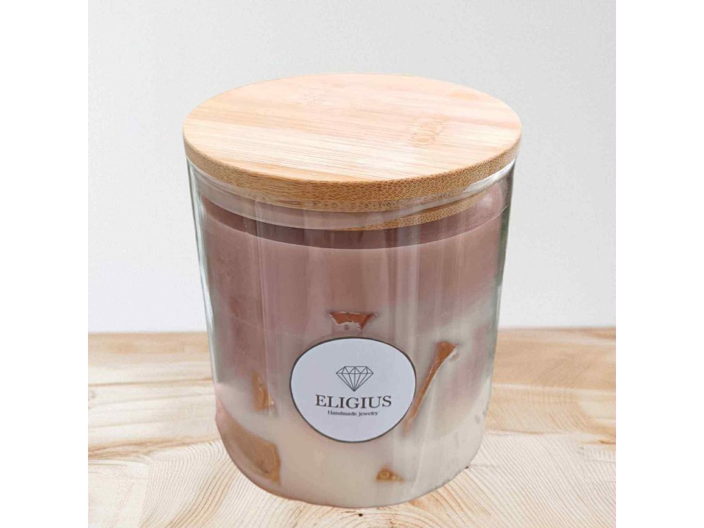 Luxusní svíčka  Iced Latte s kokosovým mlékem je dokonalým spojením designu a vůně. Svrchní vrstva připomíná čerstvě připravenou kávu, zatímco spodní část evokuje kokosové mléko a ledem. Elegantní sklenice s bambusovým víčkem dodává svíčce stylový vzhled a zároveň uchovává vůni.